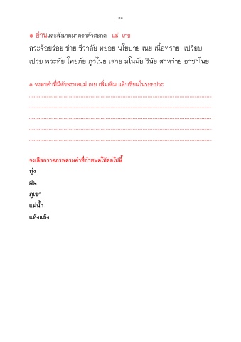 ๏ จงหาคําที่มีตัวสะกดแม เกย เพิ่มเติม แลวเขียนในรอยประ