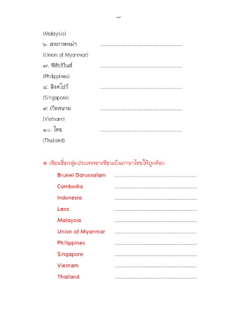 ๏ เขียนช่อกลมประเทศอาเซียนเปนภาษาไทยใหถูกตอง