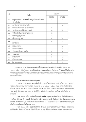 รายการ เนื้อหา เป็นค าเทศนา ประวัติและต านานของสถานที่ต่าง ๆ โดยไม่ระบุปี ที่แต่ง เข้าใจว่าพระอริยา