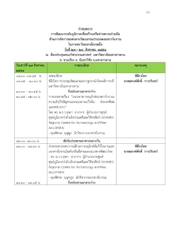 ๑๓.๐๐ - ๑๔.๓๐ น. ถ่ายทอดประสบการณ์ด้านการอนุรักษคัมภีร์ใบลานและ พิธีกรโดย
