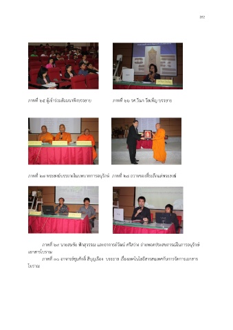 ภาพที่ ๒๗ พระสงฆ์บรรยายในบทบาทการอนุรักษ์ ภาพที่ ๒๘ ถวายของที่ระลึกแด่พระสงฆ์