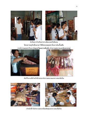 การส ารวจเอกสารใบลานในศูนย์วัฒนธรรมท้องถิ่น ท าความสะอาดและจัดหมวดหม ู่