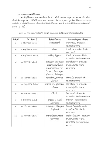 ตาราง ๑ ตารางแสดงวันเดือนปี สถานที่ บุคคลถวายคัมภีร์ใบลานให้กับพระอริยานุวัตร