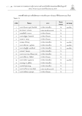 ตำรำงที่ 2-22 สรปุ รายชอื่ นิสิตคณะการท่องเที่ยวและการโรงแรม ท่ีไดร้ ้อยละคะแนน ต้งั แต่