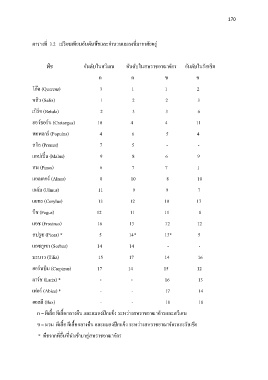 ตารางที่ 3.2 เปรียบเทียบอนั ดบั พืชและจาํ นวนแมลงท่ีมาอาศยั อยู่