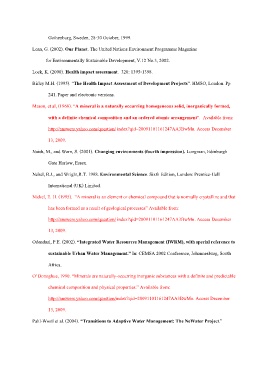 Birley M.H. (1995). “The Health Impact Assessment of Development Projects”. HMSO, London. Pp