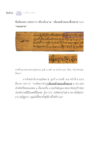 ภาพที่ ๒๕ ตัวอย่างใบลานอุรังคธาตุ ผูกที่ ๔ ลานที่ : ๒๔ หน้าที่ ๒ (เนา) ที่ระบุ “เมืองหล้าหนอง-