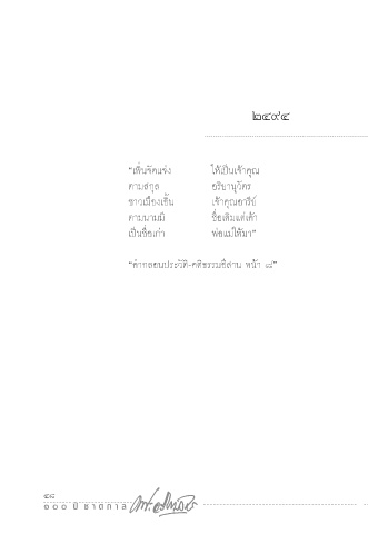 24๙4 “เพิ่นจัดแจ่ง ให้เป็นเจ้าคุณ ตามสกุล อริยานุวัตร ชาวเมืองเอิ้น เจ้าคุณอารีย์ ตามนามมี ชื่อเดิมแต่เค้า เป็นชื่อเก่า พ่อแม่ให้มา” “คํากลอนประวัติ-คติธรรมอีสาน หน้า ๘” 4๙ 4๘ ๑ ๐ ๐ ปี ช า ต ก า ล ๑ ๐ ๐ ปี ช า ต ก า ล