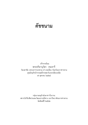 คัชชนาม ปริวรรตโดย พระอริยานุวัตร เขมจารี วัดมหาชัย (พระอารามหลวง) อ าเภอเมือง จังหวัดมหาสารคาม ศูนย์อนุรักษ์วรรณคดีภาคตะวันออกเฉียงเหนือ ๗ ตุลาคม ๒๕๑๕ กลุ่มงานอนุรักษ์เอกสารโบราณ สถาบันวิจัยศิลปะและวัฒนธรรมอีสาน มหาวิทยาลัยมหาสารคาม จัดพิมพ์ปี ๒๕๖๒