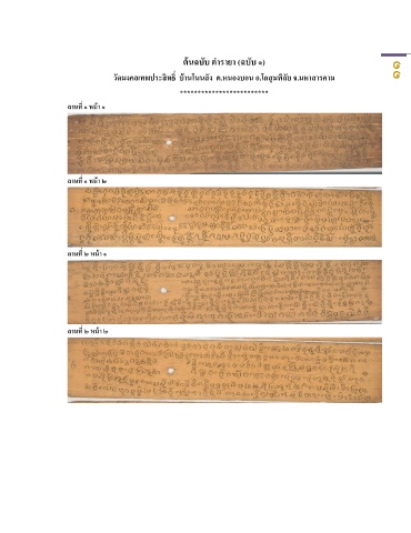 ้ ตนฉบับ ต ำรำยำ (ฉบับ ๑) ์ วัดมงคลเทพประสทธ บำนโนนสง ต.หนองบอน อ.โกสุมพิสย จ.มหำสำรคำม ๑๑ ิ ิ ั ั ้ ************************* ลำนที่ ๑ หนำ ๑ ้ ้ ลำนที่ ๑ หนำ ๒ ้ ลำนที่ ๒ หนำ ๑ ลำนที่ ๒ หนำ ๒ ้