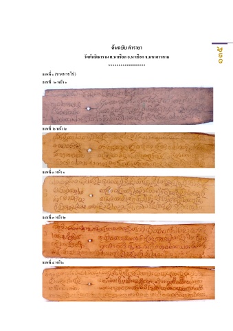 ้ ตนฉบับ ต ำรำยำ ื วัดทักษิณำรำม ต.นำเชอก อ.นำเชอก จ.มหำสำรคำม ๑๓๕ ื ****************** ลำนที่ ๑ (ขาดหายไป) ้ ลำนที่ ๒ หนำ ๑ ้ ลำนที่ ๒ หนำ ๒ ลำนที่ ๓ หนำ ๑ ้ ลำนที่ ๓ หนำ ๒ ้ ้ ลำนที่ ๔ หนำ๑