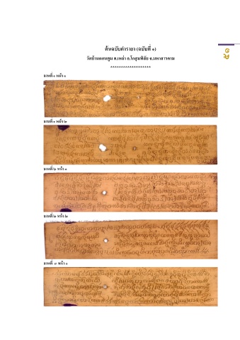 ตนฉบับต ำรำยำ (ฉบับที่ ๑) ้ ่ ้ วัดบำนดอนตูม ต.เหลำ อ.โกสุมพิสย จ.มหำสำรคำม ๕๑ ั ******************* ลำนที่ ๑ หนำ ๑ ้ ้ ลำนที่ ๑ หนำ ๒ ้ ลำนที่ ๒ หนำ ๑ ้ ลำนที่ ๒ หนำ ๒ ลำนที่ ๓ หนำ ๑ ้