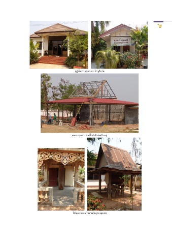 ๔ ิ ิ กุฏเจ้ำอำวำสและพระภกษุในวัด ึ ้ ศำลำเอนกประสงค์ซงก ำลังก่อสรำงอยู่ ่ โปงและกลอง โบรำณวัตถของชมชน ุ ุ