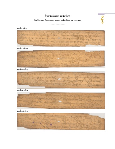 ้ ตนฉบับต ำรำยำ (ฉบับที่ ๙ ) วัดศรสมพร บำนแบก ต. นำทอง อ.เชยงยน จ.มหำสำรคำม ๑๕๑ ี ้ ื ี **************** ลำนที่ ๑ หนำ ๑ ้ ลำนที่ ๑ หนำ ๒ ้ ้ ลำนที่ ๒ หนำ ๑ ้ ลำนที่ ๒ หนำ ๒ ลำนที่ ๓ หนำ ๑ ้
