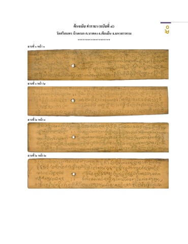 ตนฉบับ ต ำรำยำ (ฉบับที่ ๔) ้ วัดศรสมพร บำนแบก ต.นำทอง อ.เชยงยน จ.มหำสำรคำม ๕๐ ้ ี ื ี ******************** ลำนที่ ๑ หนำ ๑ ้ ้ ลำนที่ ๑ หนำ ๒ ลำนที่ ๒ หนำ ๑ ้ ลำนที่ ๒ หนำ ๒ ้
