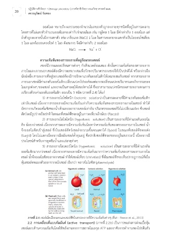 ภาพที 2.4 เซลลเมดเลือดแดงและเซลลพชในสารละลายทมความเข้มขนตางๆ (ทมา : Reece et al., 2011)