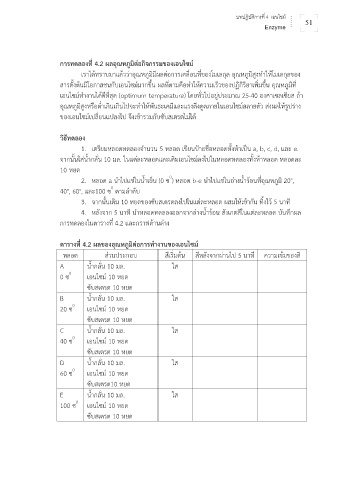 ตารางที 4.2 ผลของอณหภมตอการทางานของเอนไซม ์