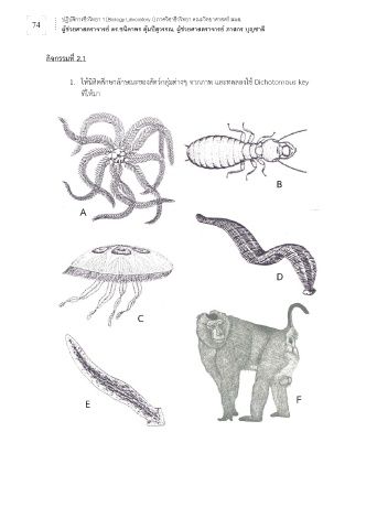 1. ใหนสิตศึกษาลักษณะของสัตวกลุมตางๆ จากภาพ และทดลองใช Dichotomous key