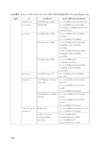 Sulfamethoxazole/ ขึนกี่บื้ข�อบื้งใช้ � CrCL 15-30 มลลลต้รู้/นาทำ่: ลดขนาดยาลง 50%