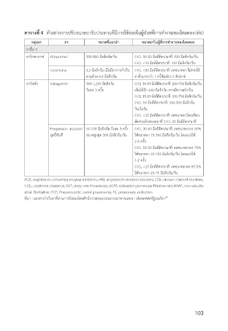 ตารางทำ่ 4 ต้วอยางกี่ารู้ปรู้บื้ขนาดยารู้บื้ปรู้ะทำานทำมกี่ารู้ใช้บื้อยในผู้ปวยทำกี่ารู้ทำางานของไต้ลดลง (ต้อ)