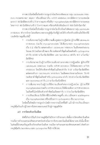 ◦ กี่ารู้เพมขนาดยาในผู้ปวยทำมความเสยงสงต้อกี่ารู้ปฏิเสธไต้: ผู้ปวยทำใช้ calcineurin