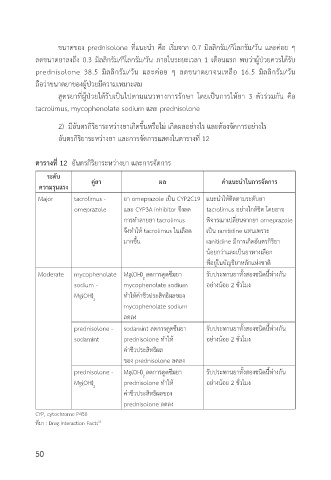 Major tacrolimus - ยา omeprazole เปน CYP2C19 แนะนาให�ต้ดต้ามรู้ะดบื้ยา