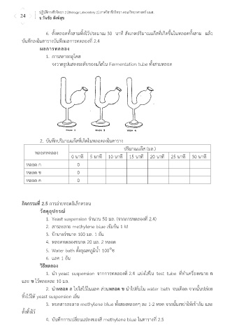 1. นํา yeast suspension จากการทดลองท 2.4 แบงใสใน test tube ททาเครืองหมาย ก