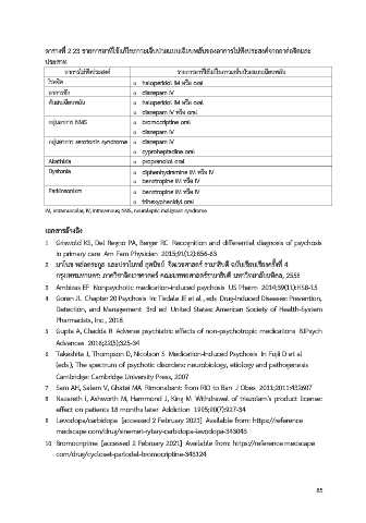ตารางที่ 2.23 รายการยาที่ใช้แก้ไขภาวะเจ็บป่วยแบบเฉียบพลันของอาการไม่พึงประสงค์จากยาต่อจิตและ