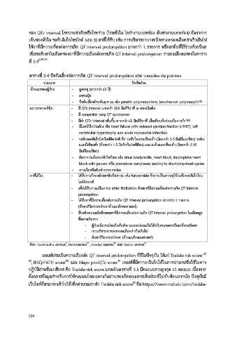 เกณฑ์ประเมินความเสี่ยงต่อ QT interval prolongation ที่มีในปัจจุบัน ได้แก Tisdale risk score 27-