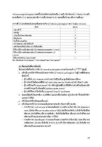 เพมระดับยาในเลือดของยาที่มีความเสี่ยงต่อการเกิด QT interval prolongation รายละเอียดแสดงในตาราง ตารางที่ 3.5 เกณฑประเมินความเสี่ยงต่อการเกิด QT interval prolongation ของ Tisdale risk score