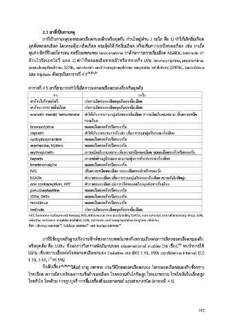 อุดตันจาก erythropoietin มีหลายกลไก คือ ท่าลายเยื่อบุหลอดเลือด กระตุ้นการเกาะกลุ่มกันของเกล็ดเลือด ตารางที่ 4.5 ยาที่สามารถท่าให้เกิดภาวะหลอดเลือดสมองตีบหรืออุดตัน