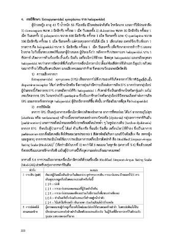 ผูปวยรายนี้เกิดอาการ EPS ภายหลังจากไดรับ haloperidol 1 สัปดาห ซึ่งเปนยารักษาโรคจิตกลุมเกา แตไม