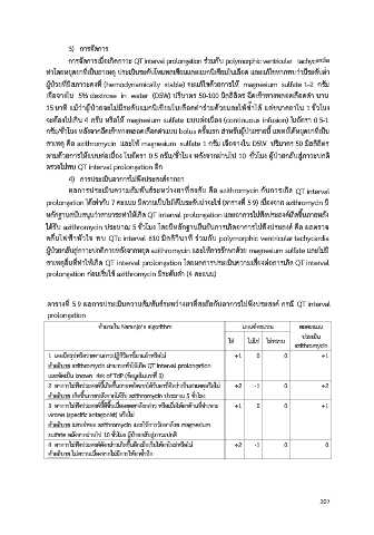 ความเสี่ยงต่อ QT interval prolongation มารวมพิจารณา เช่น Tisdale risk score (ตารางท 5.8) ซึ่งใน ยาที่เป็นสาเหตุ คือ azithromycin และให้ magnesium sulfate 1 กรัม เจือจางใน D5W ปรมาตร 50 ิ