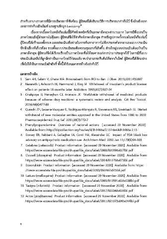 นอกจากนี้ในบทที่ 5 ผูนิพนธไดยกตัวอยางประสบการณการทํางานวิจัยดานอาการไมพึงประสงคจากยา