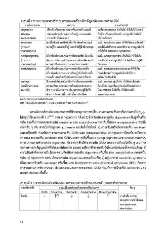 ได้สรุปไว้ในตารางท 1.3 20-25 รวม 8 กลุ่มอาการ ได้แก่ 1) โรคจตเกดจากระดับ dopamine เพมสูงขึ้นเป็น