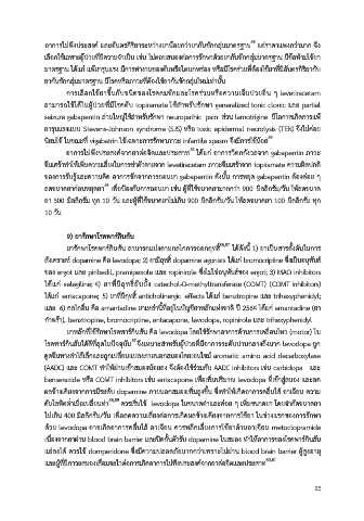 ดวย levodopa อาจเกิดอาการคลนไส อาเจยน ควรหลกเลยงการใชยาตานอาเจียน metoclopramide