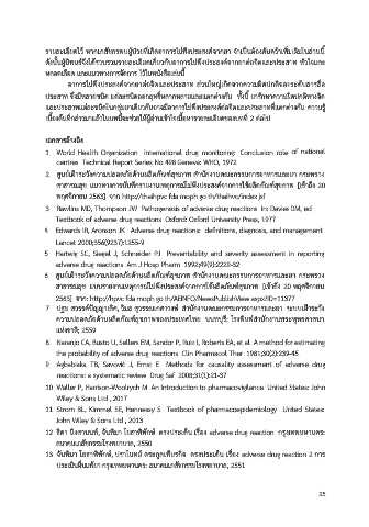 นิยามของอาการไมพงประสงคจากยาที่ใช้ในหนังสือเล่มนี้ใหความสาคญกบอาการไมพึงประสงคจาก 10. Waller P, Harrison-Woolrych M. An Introduction to pharmacovigilance. United States: John