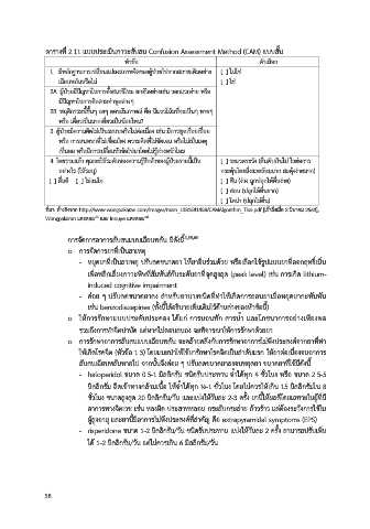 ตารางที่ 2.11 แบบประเมินภาวะสับสน Confusion Assessment Method (CAM) แบบสั้น