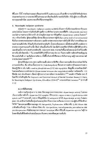 amantadine รับประทานตอเน่อง 150 มิลลิกรัม/วัน ในวันถดมา ยากลับบ้านที่ผู้ป่วยได้รับคือ levodopa วินิจฉัย NMS ค่อนข้างยาก เนื่องจากผู้ป่วยบางรายอาจมีอาการแสดงไม่ครบ 72,74 เกณฑ์การวินิจฉัย NMS ที่