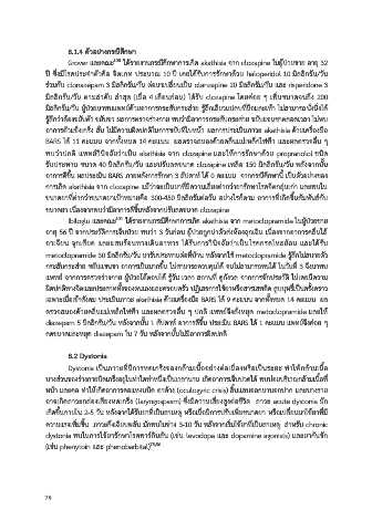 รับประทาน ขนาด 40 มิลลิกรัม/วัน และปรับลดขนาด clozapine เหลือ 150 มิลลิกรัม/วัน หลังจากนั้น ตารางที่ 2.18 ยาที่สามารถทาให้เกิด dystonia