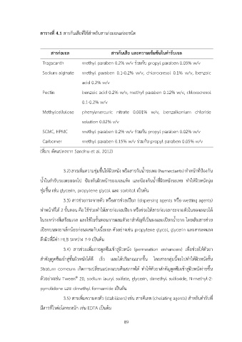 ตารางที่ 4.1 สารกันเสียที่ใช?สำหรับสารก@อเจลแต@ละชนิด