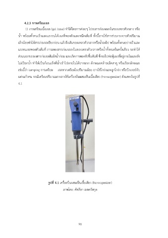 เล็กน?อยทำให?สารก@อเจลเป ยกก@อน แล?วจึงเติมของเหลวตัวกลางหรือน้ำลงไป พร?อมทั้งคนอย@างเร็วและ
