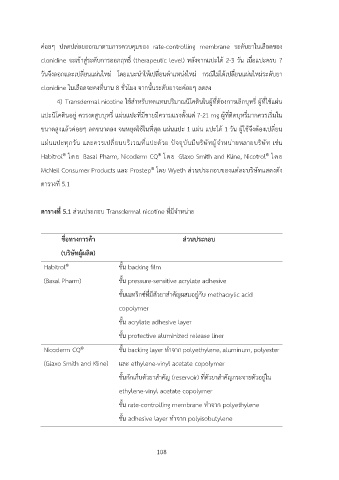 ตารางที่ 5.1 ส@วนประกอบ Transdermal nicotine ที่มีจำหน@าย