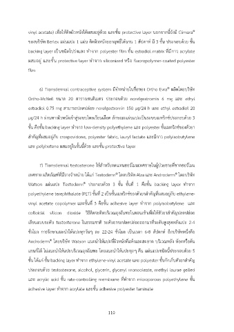 backing layer เปนชนิดโปร@งแสง ทำจาก polyester film ชั้น estradiol matrix ที่มีกาว acrylate