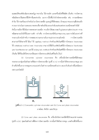 รูปที่ 6.1 ก.) Concentric cylinder viscometer และ (ข.) Cone and plate viscometer