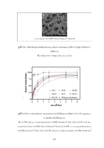 เมื่อ M-I คือ 0.45 µm polyethersulfone จากบริษัท Sterlitech (WA, USA), M-II คือ 0.45 µm