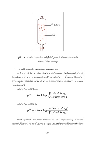 รูปที่ 7.18 การแพร@กระจายของตัวยาสำคัญไปยังวัฏภาคน้ำมันหรือออคทานอลและน้ำ