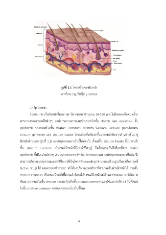 ผิวหนังด?านนอก (รูปที่ 1.2) และหลุดลอกออกเปนขี้ไคลต@อไป ตั้งแต@ชั้น stratum basale ขึ้นมาจนถึง