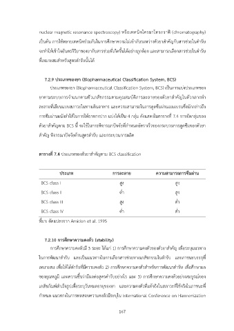 ตารางที่ 7.4 ประเภทของตัวยาสำคัญตาม BCS classification
