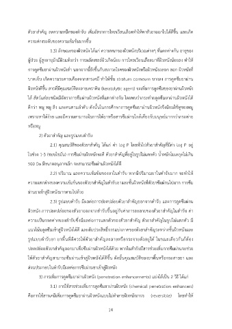 แนวโน?มดูดซึมเข?าสู@ผิวหนังได?ดี และสัมประสิทธิ์การแบ@งภาคของตัวยาสำคัญระหว@างชั้นผิวหนังและ